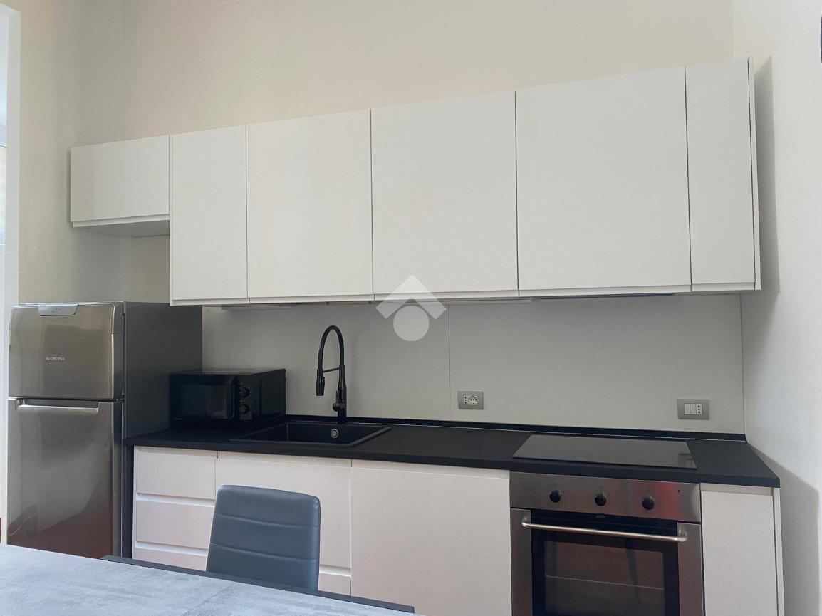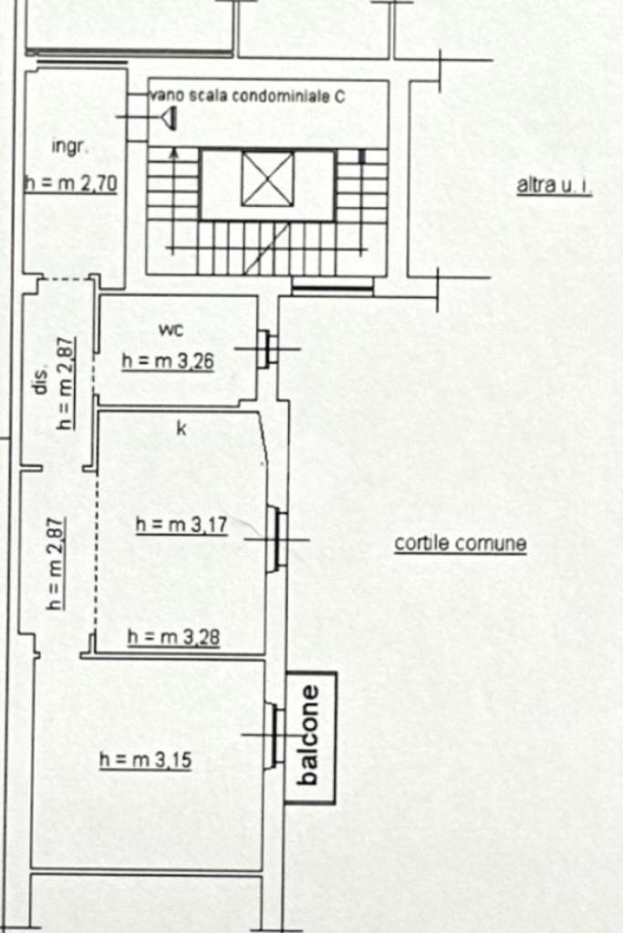 l'immobile è cosi composto: ingresso, ripostiglio, ampio soggiorno con cucina a vista, camera matrimoniale con accesso a un balcone, servizio finestrato completo di vasca e box doccia. Affacciando internamente, la soluzione garantisce il massimo comfort e tranquillità, pur trovandosi in una zona ben servita.