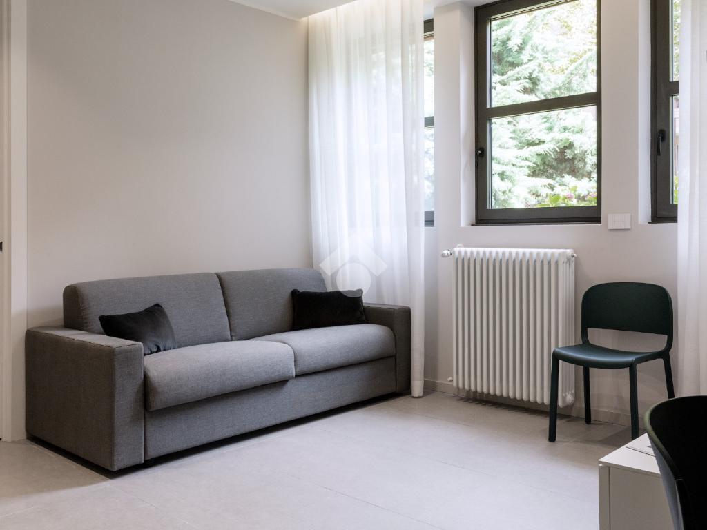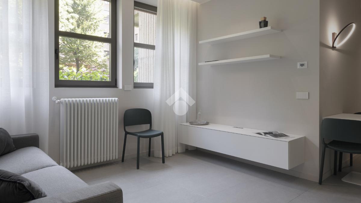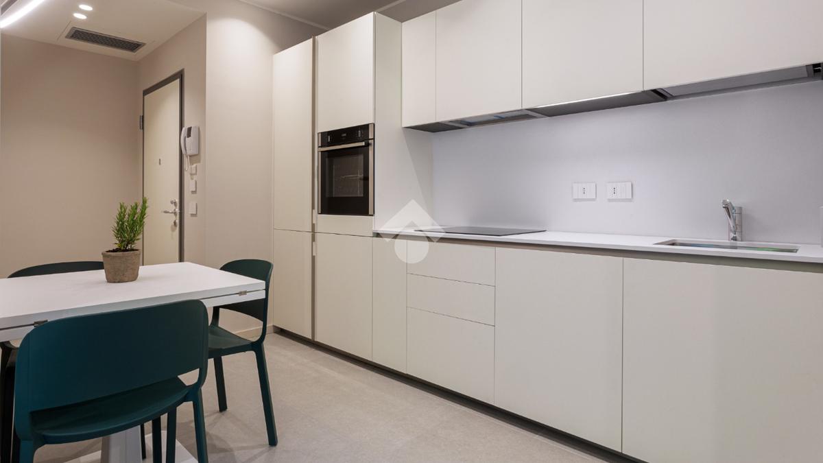 Situato all'interno di uno stabile signorile con servizio di portineria e giardino condominiale, l'appartamento è cosi composto: Ingresso, ampio soggiorno con cucina a vista, camera matrimoniale con un'ampia armadiatura e bagno con box doccia. L'aria condizionata assicura un clima piacevole in ogni stagione.