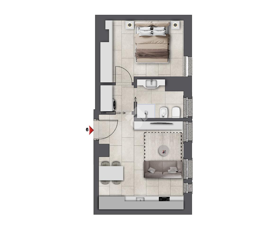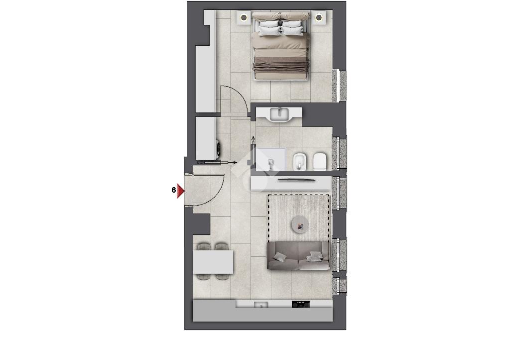 Situato al piano terra con affaccio interno in un edificio immerso nel verde, l'immobile offre un ambiente nuovo e dotato di ogni comfort. L'appartamento è composto da due locali ben distribuiti: una spaziosa camera da letto, soggiorno con cucina a vista e grande bagno finestrato con box doccia.