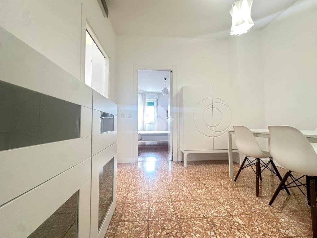 Situato in un edificio dotato di ascensore e portineria, l'immobile trovandosi al quinto piano risulta molto luminoso. La disposizione interna comprende un ampio soggiorno da cui si accede a un comodo balcone, una camera da letto luminosa con cabina armadio,ulteriore camera ideale come studio o sala da pranzo,una cucina separata per separare bene gli ambienti, da cui si accede a un altro balcone di servizio e infine un bagno finestrato dotato di box doccia.