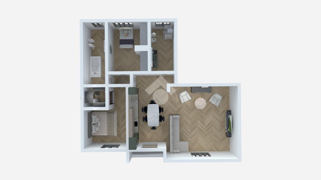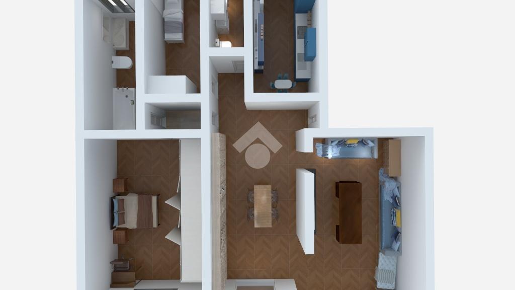 La soluzione è cosi composta: entrando si viene accolti da un soggiorno caratterizzato da un ampio ambiente e molto luminoso da cui si accede a un balcone, cucina abitabile attrezzata. Passando poi alla zona notte troviamo una camera singola con bagno di servizio e camera matrimoniale con bagno padronale, c'è inoltre un comodo dismpegno che separa il passaggio dagli ambienti principali.