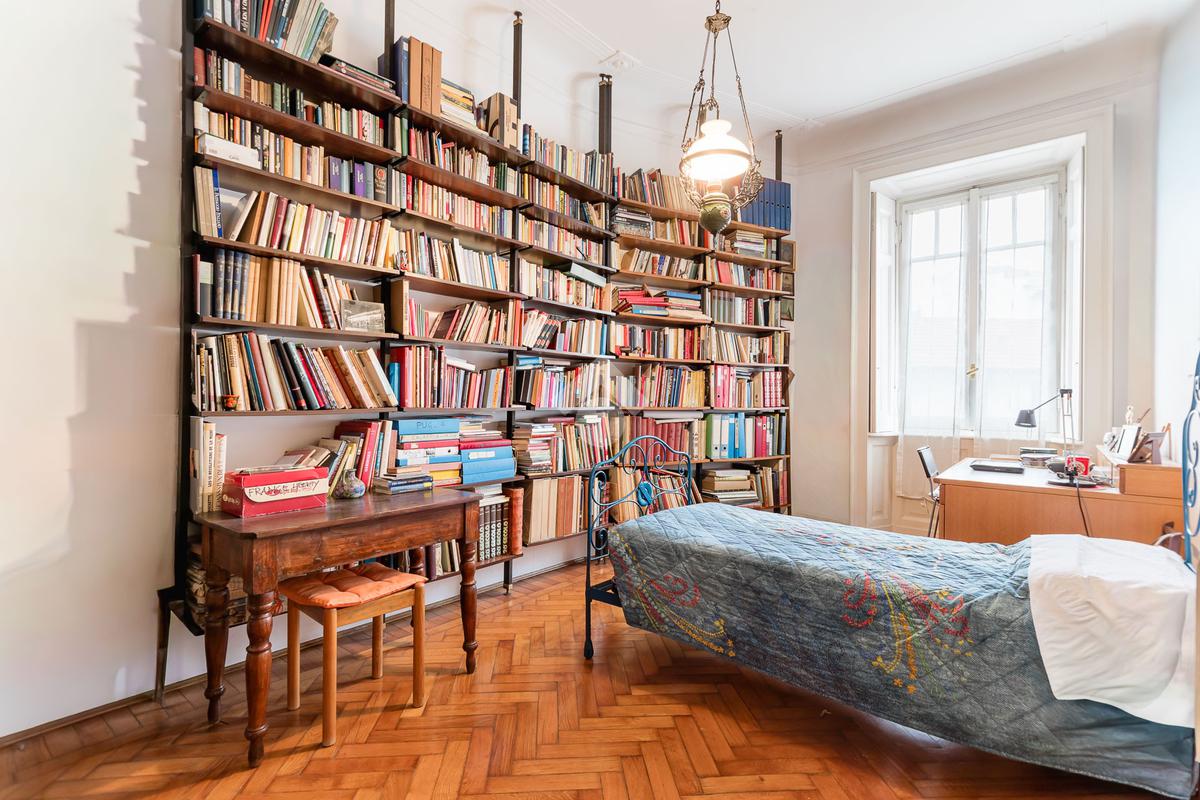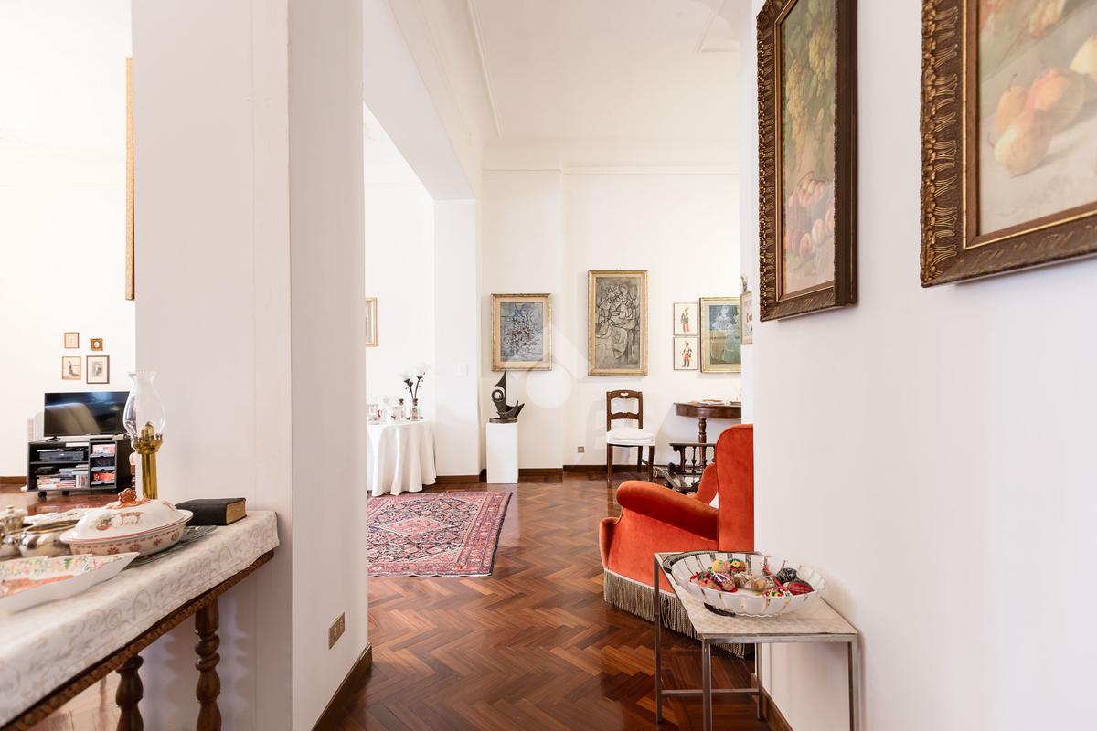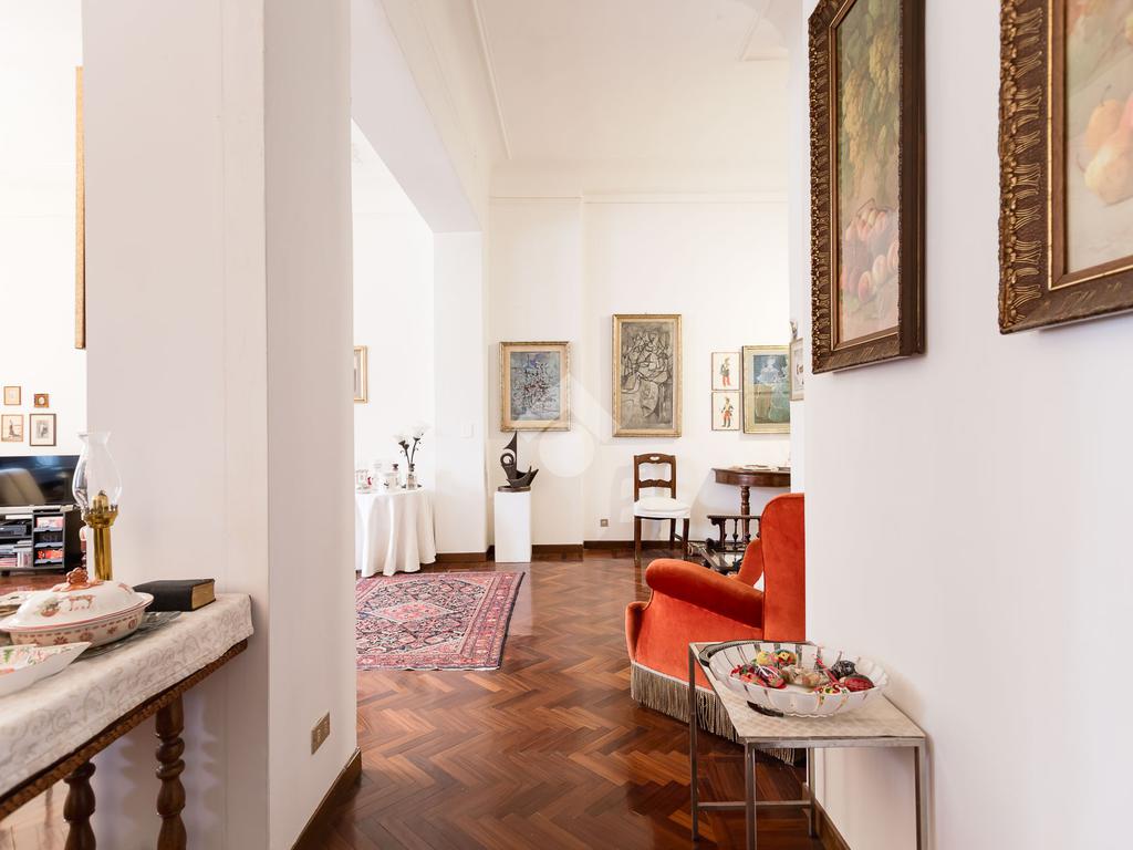 L'immobile, di 150 mq, si trova al quarto e penultimo piano dello stabile, garantendo un'ottima illuminazione e una vista aperta su Via del Caravaggio e i giardini di Via Dezza. Gli ampi spazi interni comprendono tre locali ben distribuiti, due bagni finestrati e una cucina abitabile.
